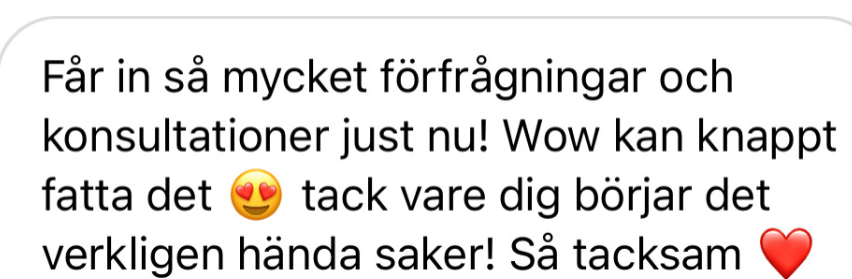 Det här blir möjligt även för dig när du tar beslutet att jobba på djupet med grunden och ditt oemotståndliga erbjudande som attraherar människor att vilja ha det du erbjuder.